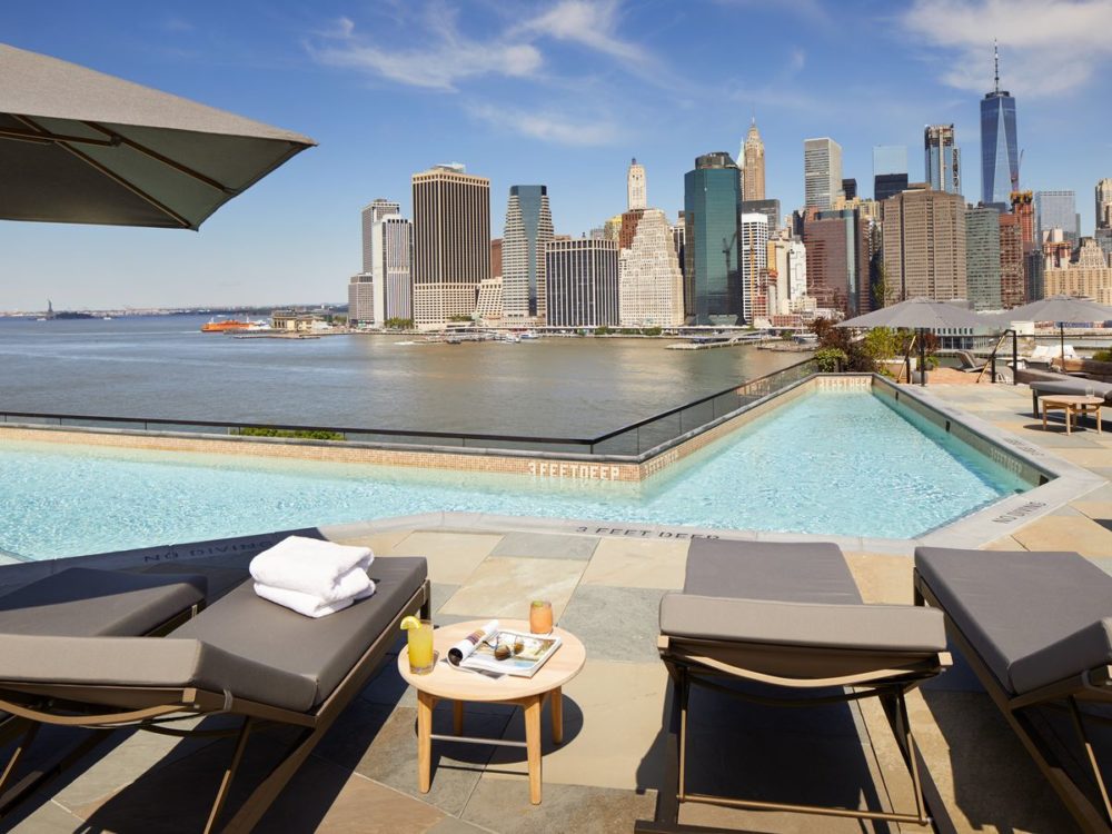 Krönender Abschluss des Hotels ist das Dach. Hier gibt es eine Rooftopbar mit Pool, die einem atemberaubenden Blick auf Downtown Manhattan bietet. Bar, Lobby und das zugehörige Restaurant sind öffentlich zugänglich und Sie müssen für einen Besuch kein Hotelgast sein. Das Hotel ist übrigens mit der Fähre auf schöne Art zu erreichen. Der Anlageplatz ist nur ein paar Meter vom Hotel entfernt.