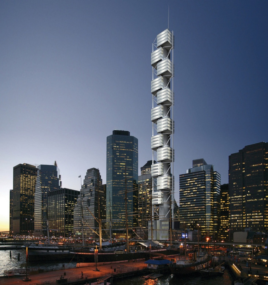 Im Jahr 2003 entwarf der berühmte Architekt Santiago Calatrava einen 255m hohen Turm mit Metallfassade. Als Standort war die South Street in Manhattan unweit der Börse vorgesehen. Die zwölf Würfel waren als jeweils vier Stockwerke hoher Wohnraum mit eigenen Außengärten geplant. Caltrava nannte sie Townhouses in the Sky, Stadthäuser im Himmel.