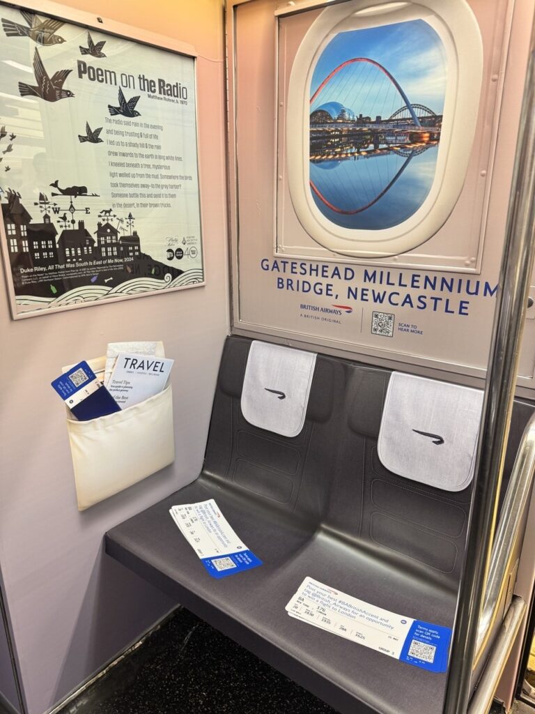 Es gab Sitzgelegenheiten im Stil einer Flugzeugkabine, visuelle Elemente, die von den Reisezielen der Airline inspiriert waren, und Bahnsteigansagen, die mit kultiviertem britischem Akzent vorgetragen wurden.