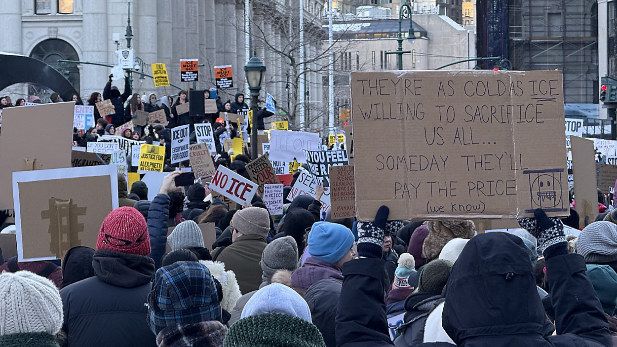 Sprechchöre hallten am Freitagnachmittag (30. Januar) über den Foley Square im südlichen Manhattan vor einem Verwaltungsgebäude der Bundesregierung, das auch Büros der Einwanderungsbehörde ICE enthält, als Tausende bei eisigen Temperaturen demonstrierten. Die Proteste drücken die Wut vieler Bürger über die Einwanderungspolitik und die Tötung von Alex Pretti und Renee Good durch ICE in Minnesota aus. „Ich will … <a href="https://newyorkaktuell.nyc/anti-ice-proteste-in-solidaritaet-mit-minnesota-tausende-demonstrieren-in-new-york-bei-eisigen-temperaturen-gegen-das-vorgehen-der-behoerde/" class="wp-embed-more" target="_top"><span class="screen-reader-text">Anti-ICE-Proteste in Solidarität mit Minnesota – Tausende demonstrieren am Freitag in New York bei eisigen Temperaturen</span> weiterlesen</a>