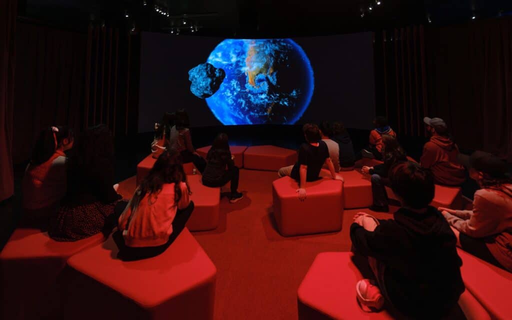 Die Ausstellung beleuchtet auch, wie Wissenschaftler versuchen zukünftige Asteroideneinschläge vorauszusagen und nach Methoden forschen, um diese abzulenken.