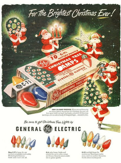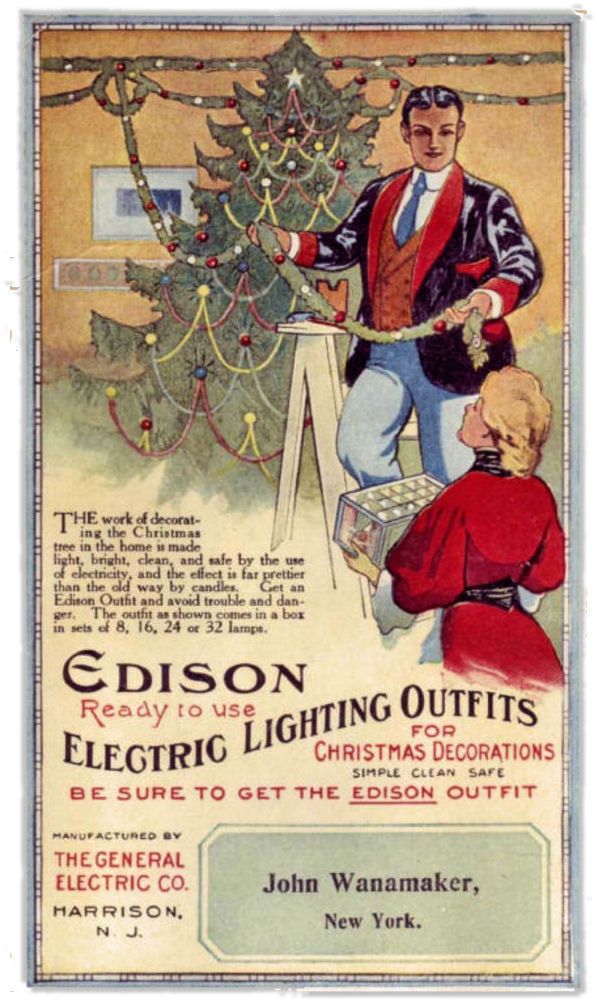 Elektrische Lichter waren zunächst sehr teuer und die Installation erforderte die Dienste eines Fachmanns. Als die Herstellungskosten für die Lichter sanken und es einfacher war, sie zu nutzen, brachte General Electric 1903 ein erstes Weihnachtslichter-Massenprodukt in den Verkauf. Das Set war bereits verkabelt und musste nur noch eingesteckt werden. Der Preis war relativ erschwinglich. Dass die Brandgefahr viel geringer als bei Wachskerzen war, war ein wichtiges Verkaufsargument.