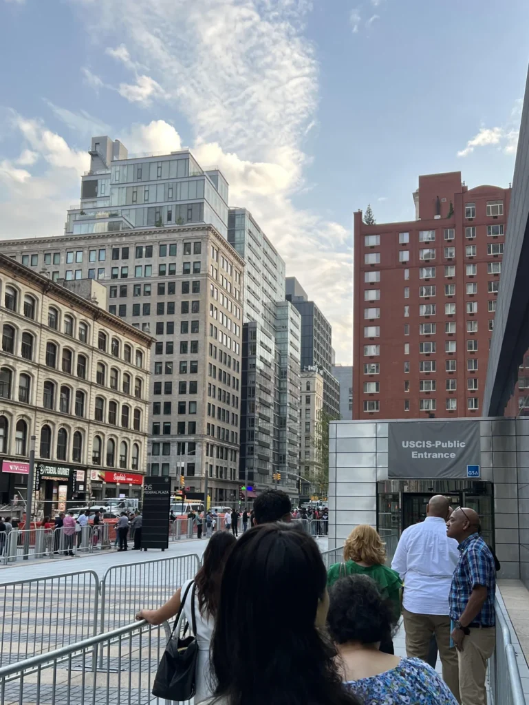 Einwanderer warten auf Einlass in den U.S. Citizenship and Immigration Service in New York, einer der Stellen in den USA, wo der Test vorgenommen wird