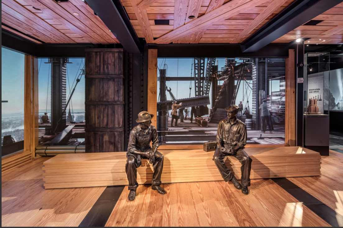 Bau: Das Herztück sind hier die legendären Fotos von Lewis Hines. Zur Zeit der Errichtung befand sich New York in den Klauen der weltweiten wirtschaftlichen Depression.