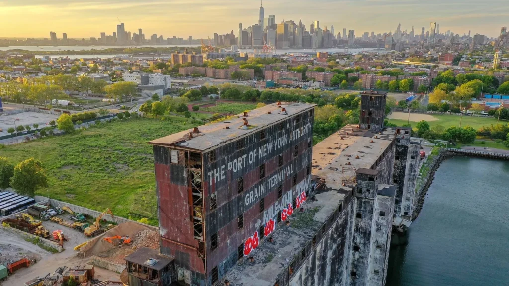 Das 1922 fertig gestellte ‘Red Hook Grain Terminal’ im gleichnamigen Hafenviertel in Brooklyn war als gewaltiger Umschlagsplatz für Getreide konzipiert. Das Geschäftsmodell basierte auf dem Erfolg eines neuen Systems von Kanälen, der sich aber nie richtig einstellte. In den 43 Jahren seiner Existenz schaffte man es deshalb nie, die Anlage vernünftig auszulasten. 1965 wurde der Betrieb eingestellt und der Terminal rottet seitdem vor sich hin. Das Gebäude besteht aus einer Reihe von baufälligen 40 m hohen Silos, massiven Getreideaufzügen und anderer Infrastruktur, die es zu einer eindrucksvollen Industrieruine machen. Das mit Schwarzschimmel bedeckte Relikt aus der industriellen Vergangenheit New Yorks hat etwas schaurig-schönes.