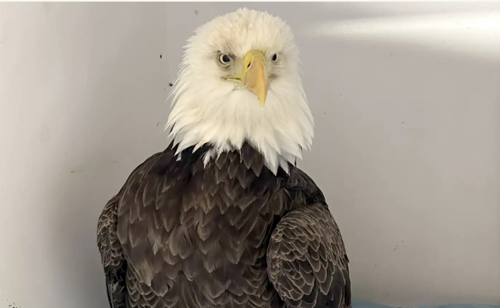 Als sie endlich bei dem Adler ankamen, sahen die Beamten Blut an seinen Krallen; er schien auch eine Flügelverletzung erlitten zu haben, die ihn am Fliegen hinderte. Aufnahmen von Körperkameras zeigten, wie die Polizisten sanft mit dem Tier sprachen, um es zu beruhigen, während sie ihm eine Ketschstange über die Flügel stülpten. Der Vogel blieb während der gesamten Rettungsaktion ruhig, was die Polizisten glauben ließ, dass er wusste, dass sie ihm helfen wollten.