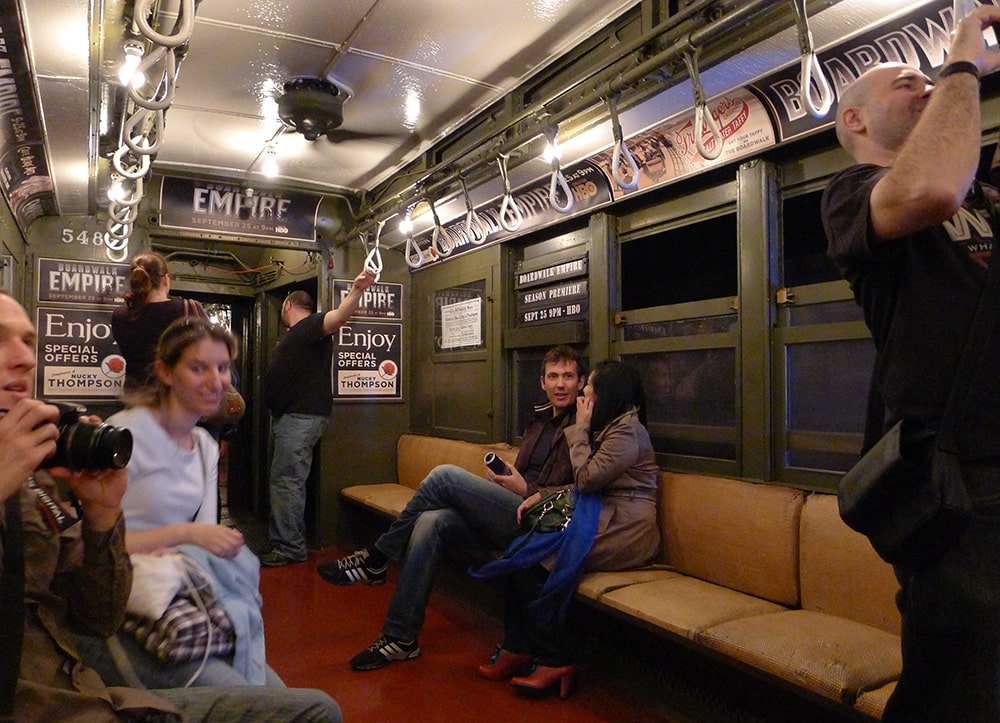 Wie jeden Dezember können New Yorker und Besucher auch dieses Jahr Fahrten auf einer klassischen U-Bahn des Models R19 aus den 1930-er Jahren mit Rattansitzen, Deckenventilatoren, Glühbirnen, Rollos und originalen Werbeplakaten machen.