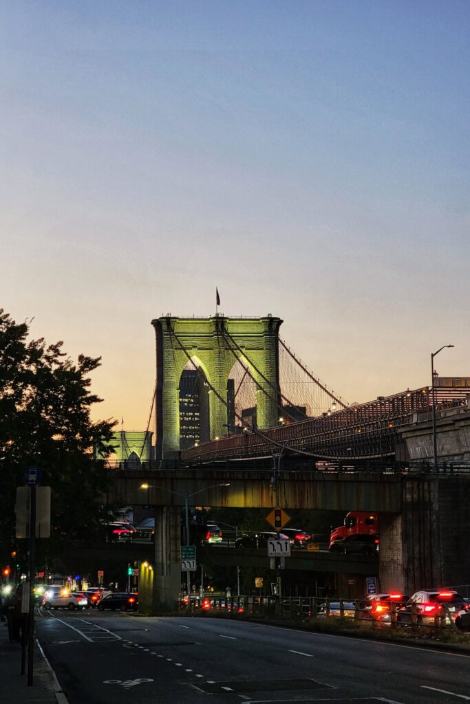 Ein Spaziergang über die Brooklyn Bridge und/oder Verweilen im Brooklyn Bridge Park sind Silvestertraditionen. Man hat eine fantastische Aussicht auf die Skyline und den New Yorker Hafen, wo es ein Feuerwerk gibt.