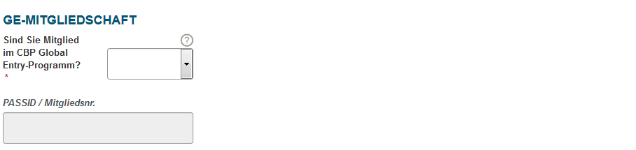 6-) Global Entry – Als nächstes wird man gefragt, ob man Mitglied von CBP Global Entry ist, ein Programm der Customs und Border Protection (CBP) ist, dass die Einreise unter Umständen weiter vereinfacht und beschleunigt. Wenn ja ist die Global Entry Nummer anzugeben. Mehr Info zum Global Entry Program auf diesem Link der offiziellen CBP Webseite.