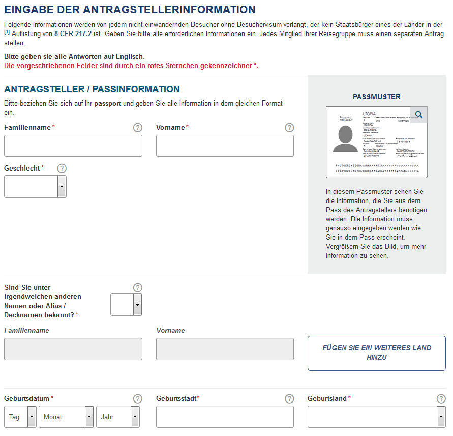 Um in die Vereinigten Staaten bis zu 90 Tagen einreisen zu können, benötigen Deutsche, Schweizer und Österreicher kein Visum, sondern die einfacher und schneller zu bekommende ‘ elektronische Einreiseerlaubnis‘ ESTA (Electronic System for Travel Authorization).
