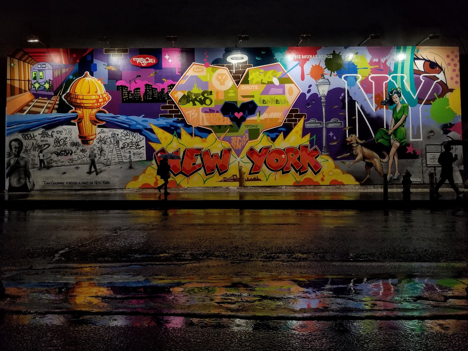 Street Art ist eine Kunstform, die man mit New York verbindet, wie kaum eine andere Stadt. Wer U-Bahnzüge voller Grafitti sehen will, ist aber etwas zu spät dran – die gibt es seit den 1990er Jahren so gut wie nicht mehr. Street Art, die unverlangt an Hauswänden, Passagen oder Ladengittern angebracht ist, ist ebenfalls Mangelware.