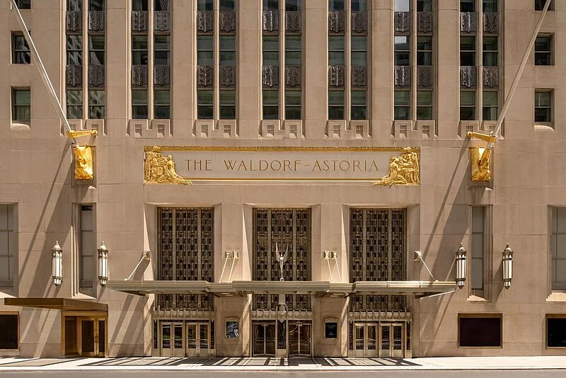 Das Waldorf Astoria bestand ursprünglich aus zwei Hotels, dem Waldorf und dem Astoria, die 1893 und 1897 die auf der 5th Avenue zwischen 33rd und 34th Street errichtet wurden. 1929 wichen sie dem Bau des Empire State Building und eröffneten 1931 als ein einziges Haus, jetzt Waldorf-Astoria genannt, an der